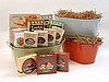 These miniature-style wash tubs are filled with delicious southern treats which include, Geraldine's cheese straws, 3 varieties of Wheelers pecans, La Piccolina peach schnapps cake, southern trash spicy snack mix, sweet onions and peppers and cucumber dill dressing, and dried peaches!